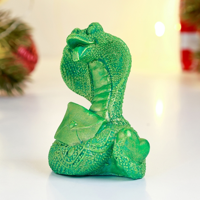 Новый год. Символ 2025. Фигура "Змея с письмом" светло-зеленая, 6х6х5см