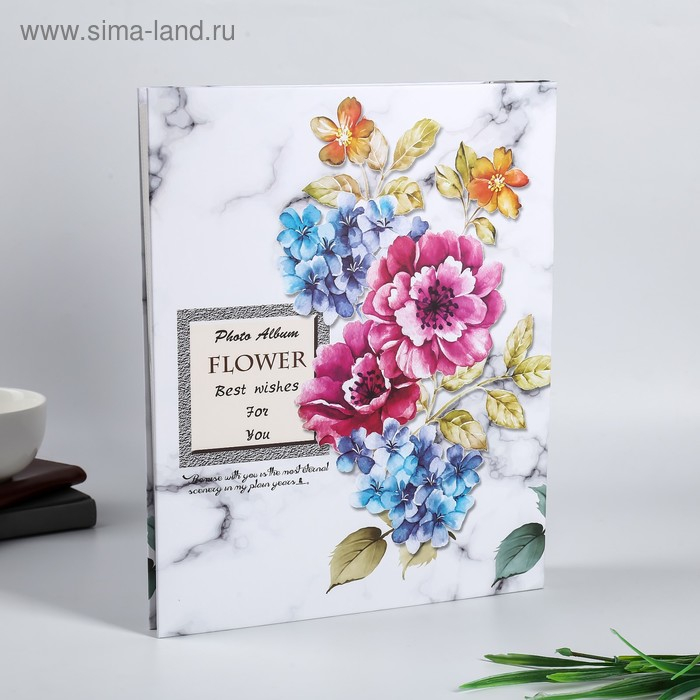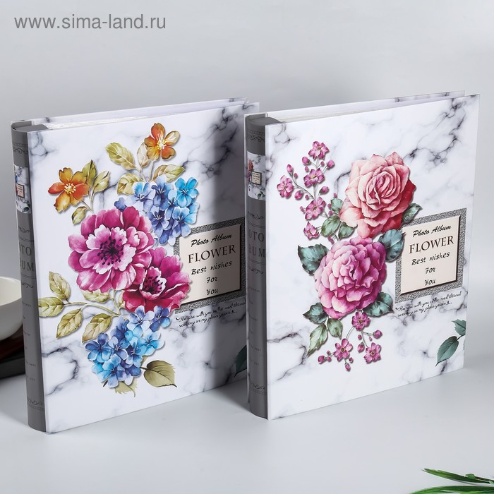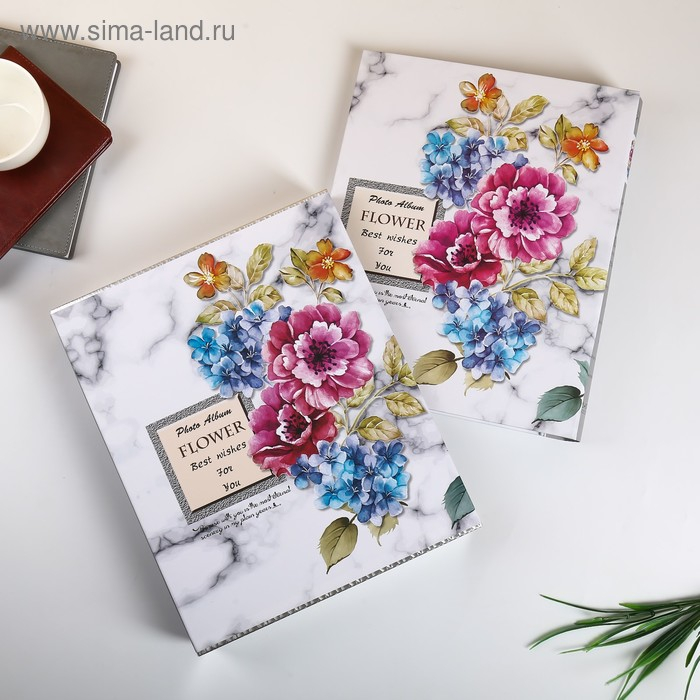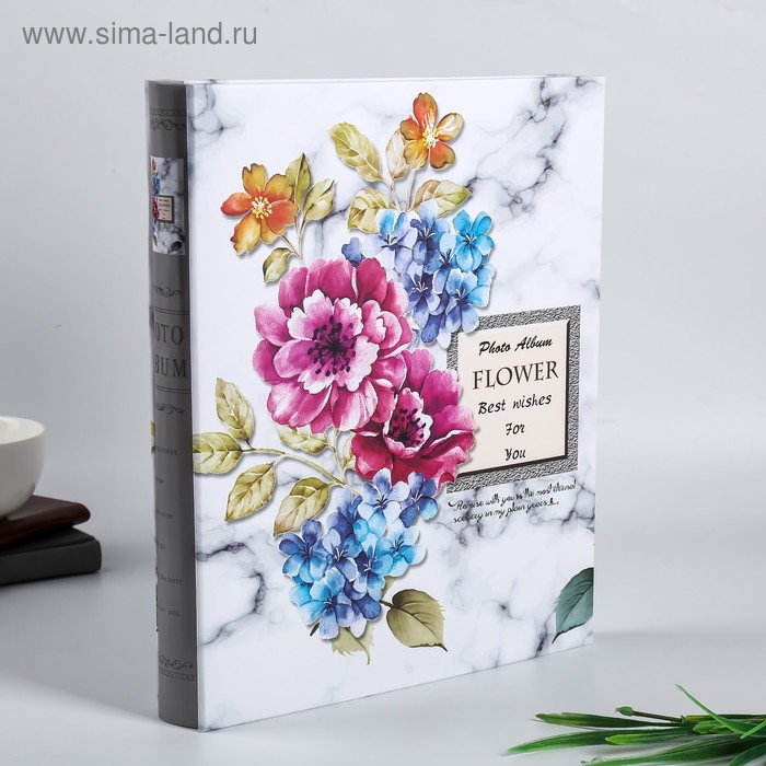 Фотоальбом на 400 фото 10х15 см "Цветы и мрамор" зол.обводка, в коробке МИКС 33,5х27,5х5,5см 47641