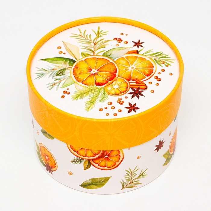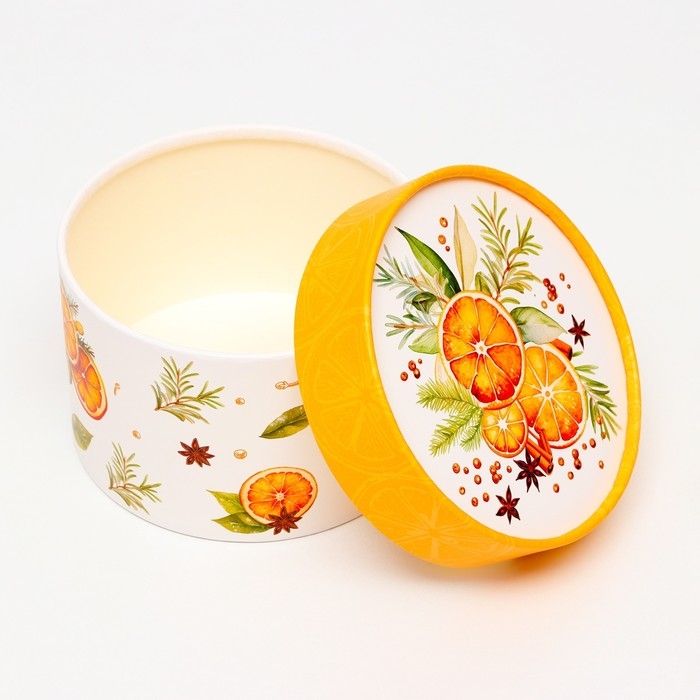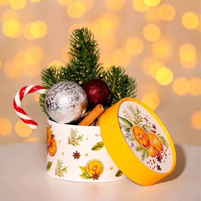 Новый год. Коробка подарочная новогодняя для макарун тубус без окна "Мандаринки", 12 х 8 см.