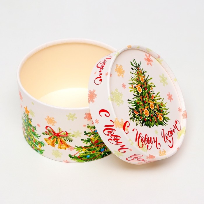 Новый год. Коробка подарочная новогодняя для макарун тубус без окна "Ёлки", 13 х 8,5 см.