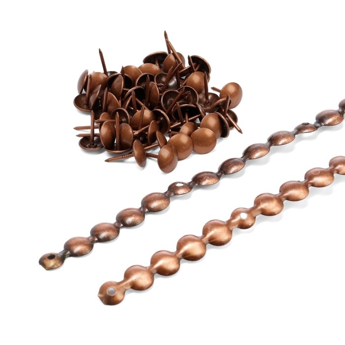 Лента декоративных гвоздей ТУНДРА, длина 1 м, 11х16 мм, медь, 10 шт