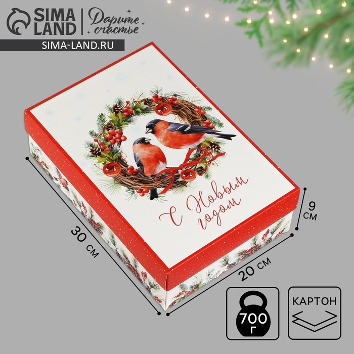 Коробка подарочная новогодняя складная «Снегири», 30 х 20 х 9 см, Новый год