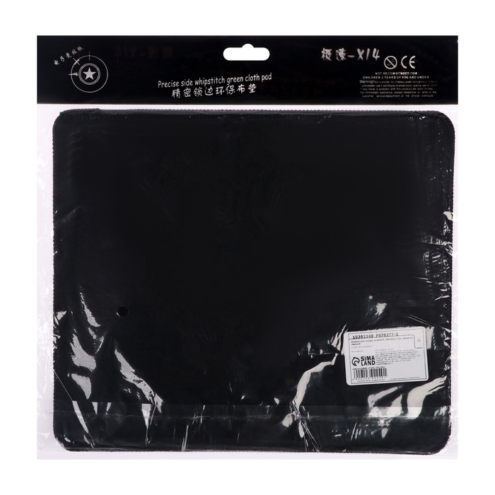 Коврик для мыши, игровой, 25x29x0,2 см, оверлок, чёрный