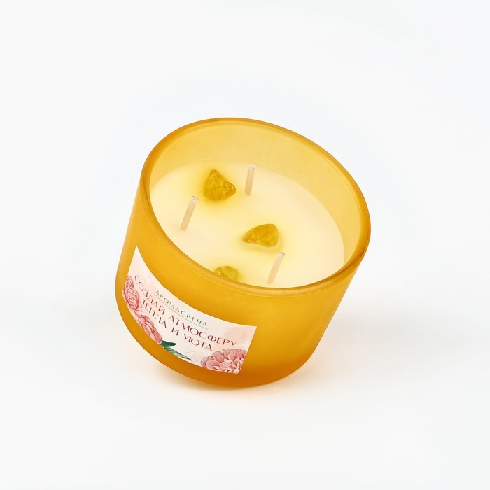 Ароматическая свеча в стекле «Создай атмосферу тепла и уюта» с натуральными камнями: цветы.