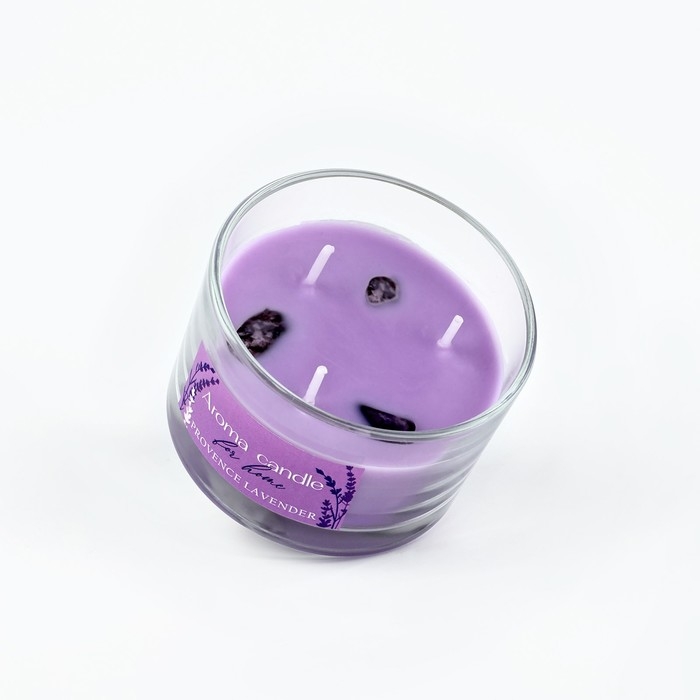 Свеча ароматическая в стекле «For home» с натуральными камнями: лаванда, 6,8 х 5 см.