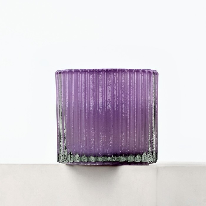 Свеча имеет светло-лиловый цвет, на стекле рифленые полоски.