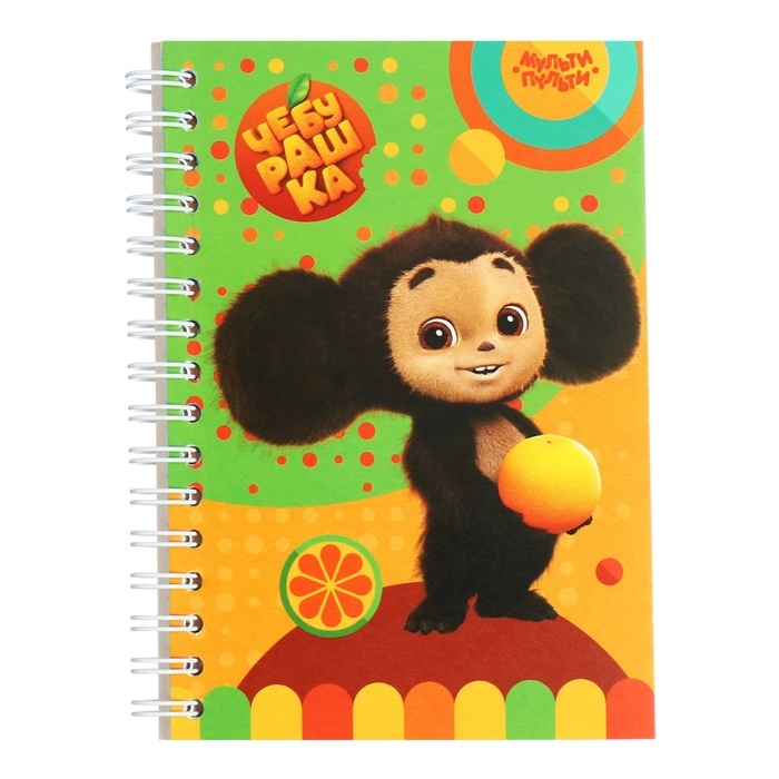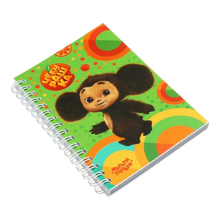 Записная книжка «Мульти-Пульти» серии «Чебурашка» – отличный подарок для ребёнка, который поможет ему стать организованным. Внутренний блок состоит из 80 листов белой офсетной бумаги плотностью 60 г/м2. Линовка – клетка без полей. Благодаря компактному формату А6 (100*145 мм) записную книжку удобно брать с собой. Скрепление на гребне позволяет раскрывать изделие на 360 градусов.Глянцевая обложка из качественного мелованного картона защищает внутренний блок от замятия и загрязнения. Дизайн записной книжки, который представлен в четырёх вариантах, с полюбившимся всем ушастым героем привлекает внимание детей.