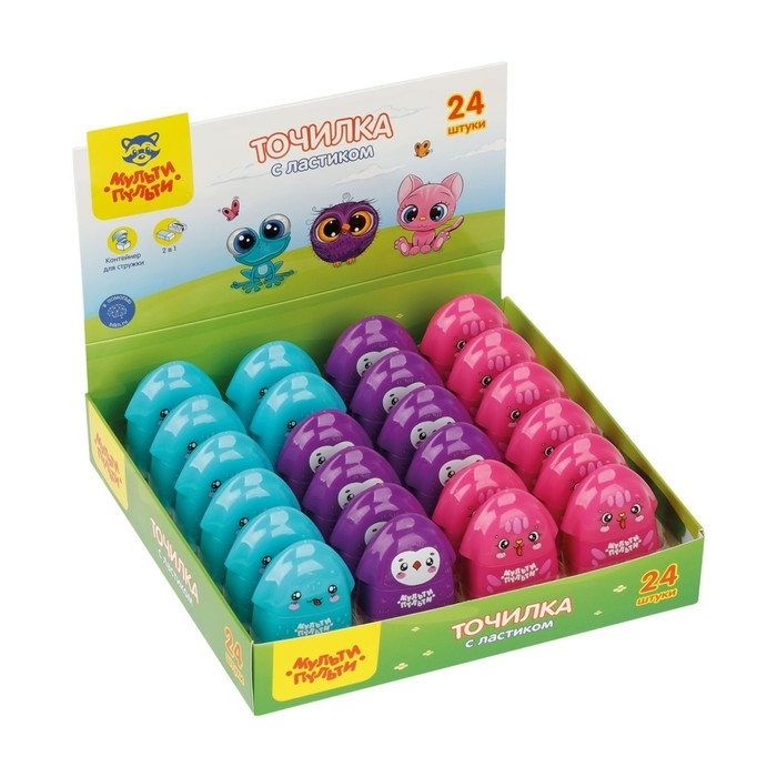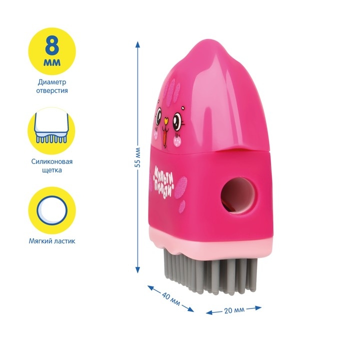 Точилка пластиковая с ластиком Мульти-Пульти "Милашки", 1 отверстие, с контейнером МИКС