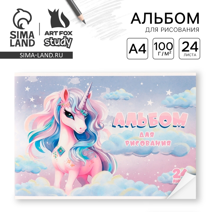 Альбом для рисования А4 24 листа на скрепке «1 сентября:Розовый Единорог» ВД-лак