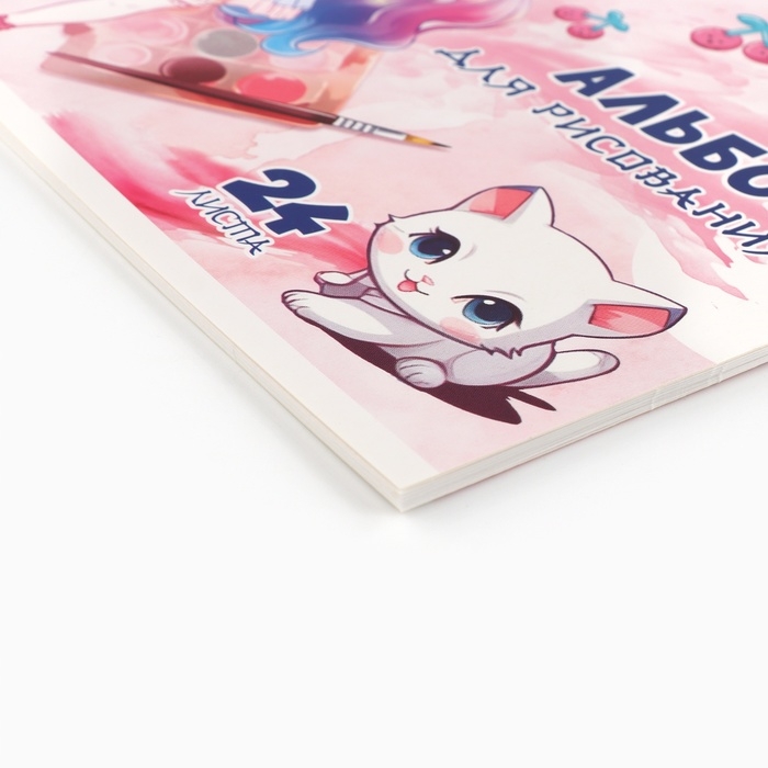 Альбом для рисования А4, 24 листа, на гребне, "Милые котята" обложка мелованный картон, блок 100 г/м², перфорация на отрыв, МИКС