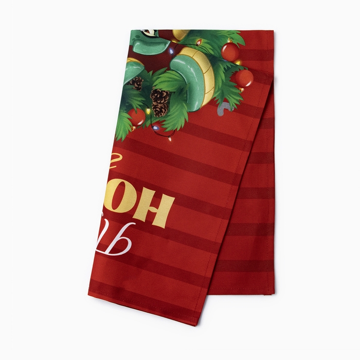 Новый год. Символ года. Змея. Кухонное полотенце Этель "Новогодний венок" 40х70 см, 100% хл, саржа 190 г/м2