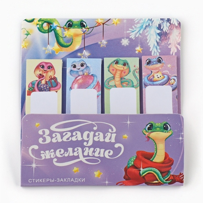 Новый год. Стикеры закладки с липким слоем «Загадай желание. Символ года», 4 шт, 20 л