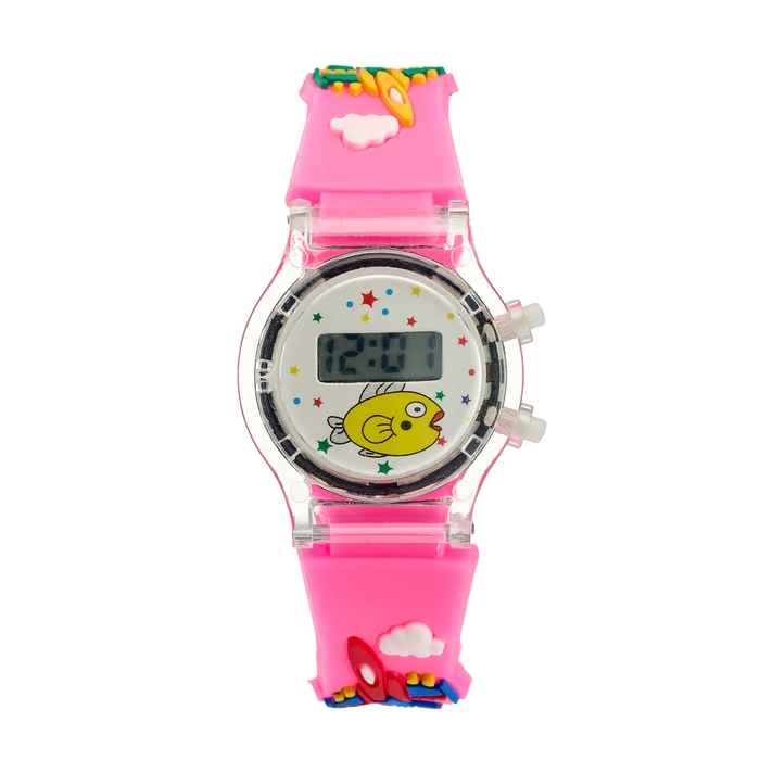 Часы наручные электронные, детские "Самолет", ремешок силикон l-21.5 см