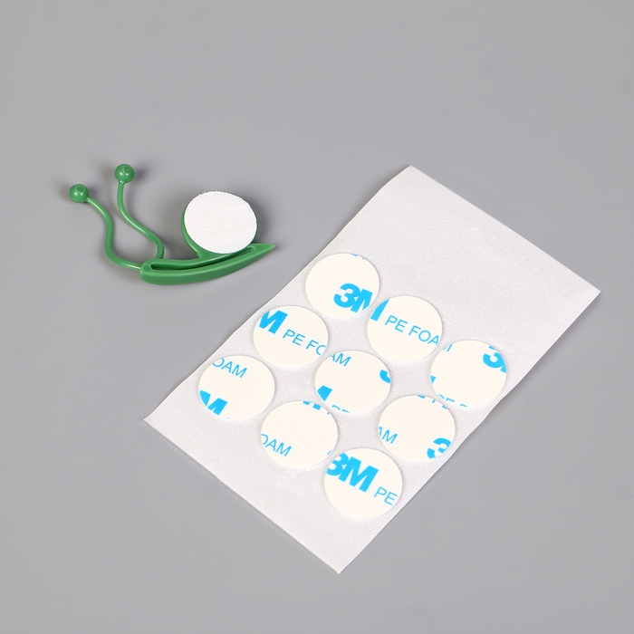 - Клейкий слой. Обратная сторона каждого крепления оборудована клейким слоем, который позволяет легко и надёжно прикрепить крепление к стене, окну, двери или любой другой гладкой поверхности.