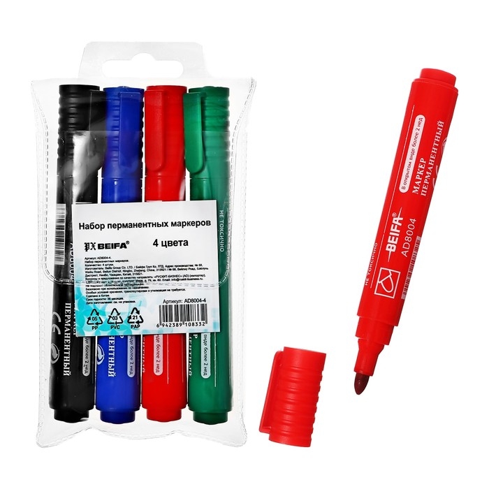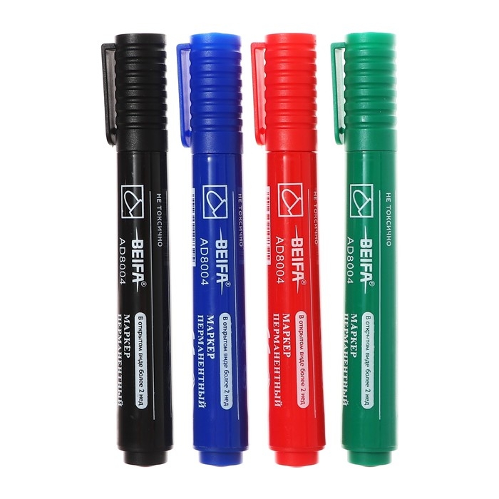 Набор маркеров перманентных Beifa Classic, 3.0 мм, 4 цвета, европодвес