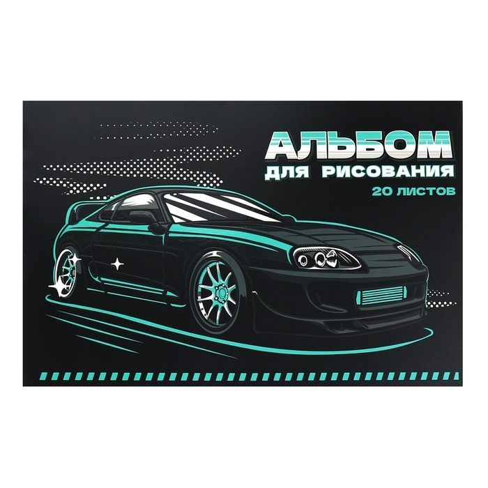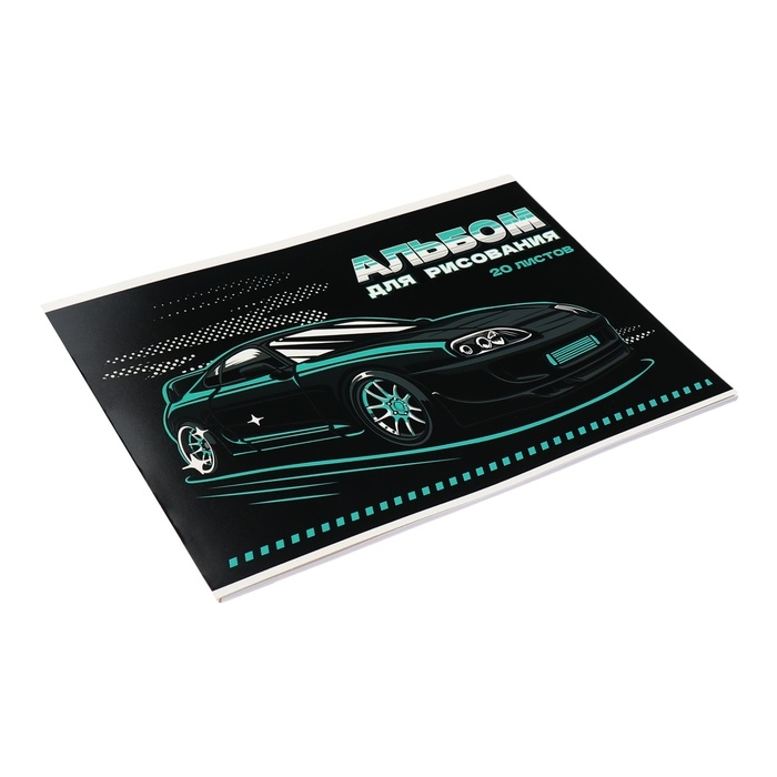 Альбом для рисования А4, 20 листов на клею "Black car", обложка мелованный картон, выборочный УФ-лак, блок 100 г/м2