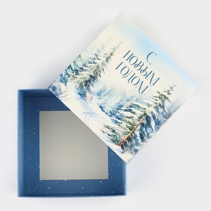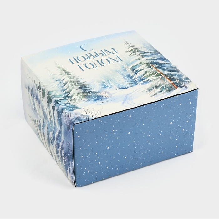 Подарочная коробка складная, новогодняя«Зимний лес», 14 х 14 х 8 см, Новый год