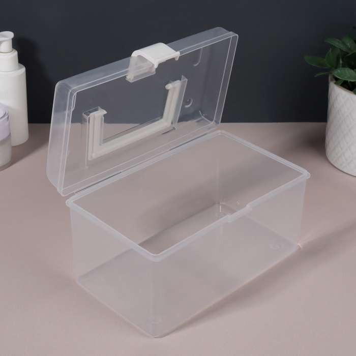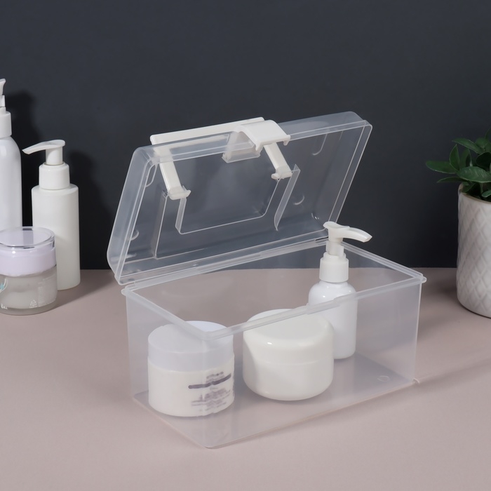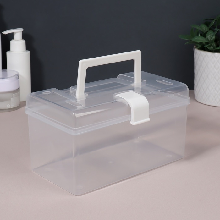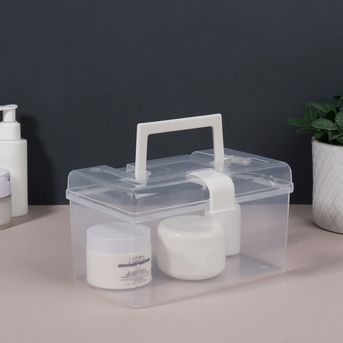 Органайзер для хранения, с крышкой, с ручкой, 19,5 × 12 × 11 см цвет прозрачный/белый