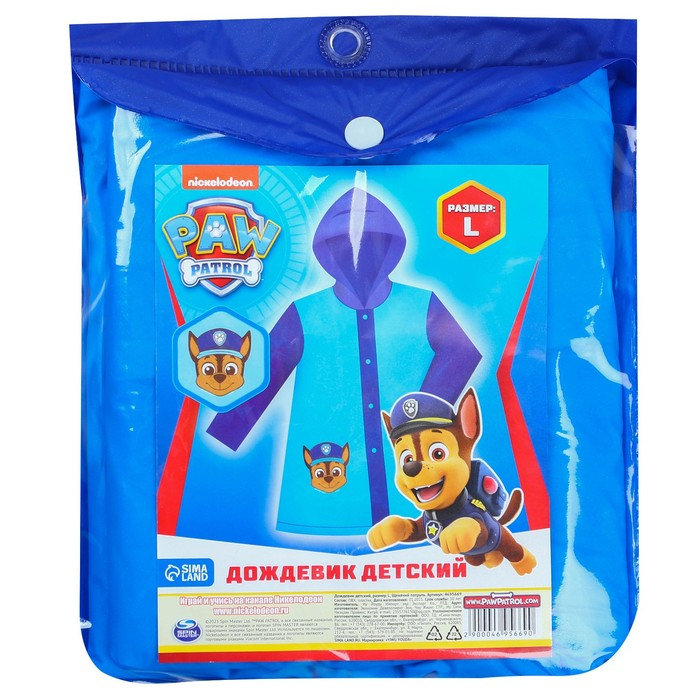 Дождевик детский, размер L, 110-120 см , Щенячий патруль
