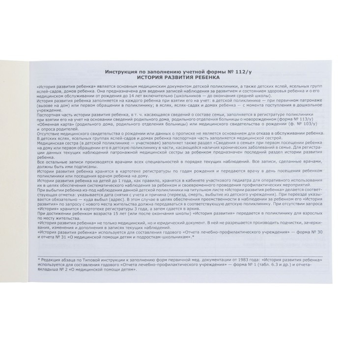 Медицинская карта ребенка Форма №112/у, 80 листов, Бэмби
