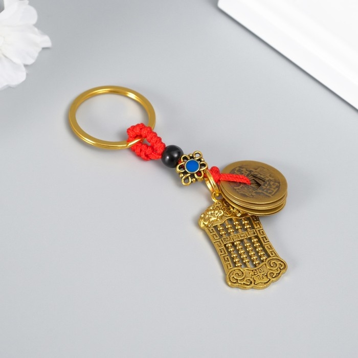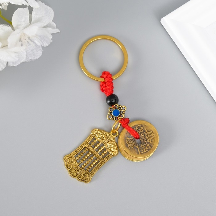 Брелок металл "Счёты и китайские монеты" 5 монет h=9,5 см