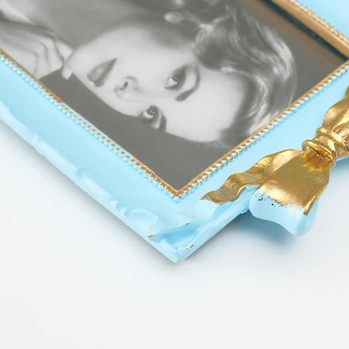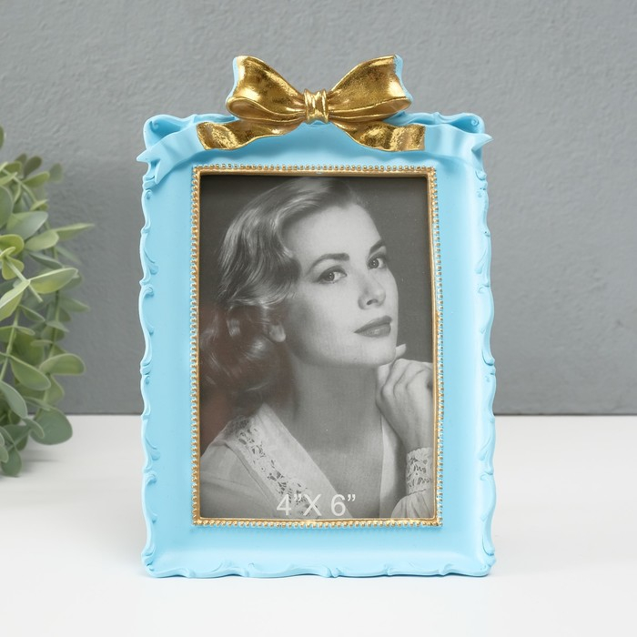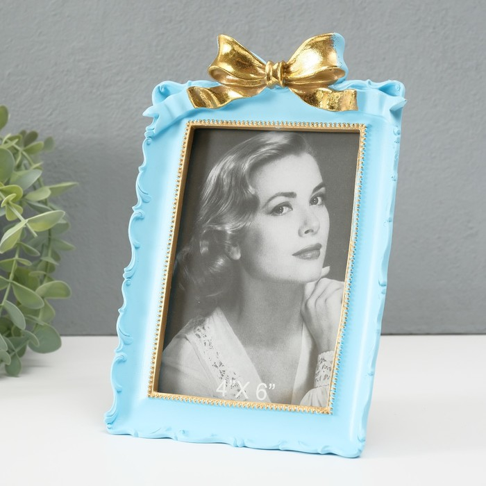 Фоторамка полистоун 10х15 см "Золотой бант" голубая 20х13,5х3 см