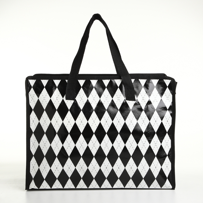 Сумка хозяйственная на молнии, цвет чёрный/белый