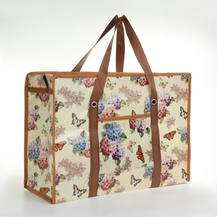 Сумка хозяйственная на молнии, наружный карман, цвет бежевый
