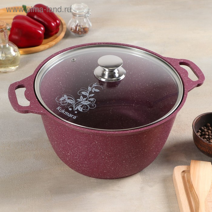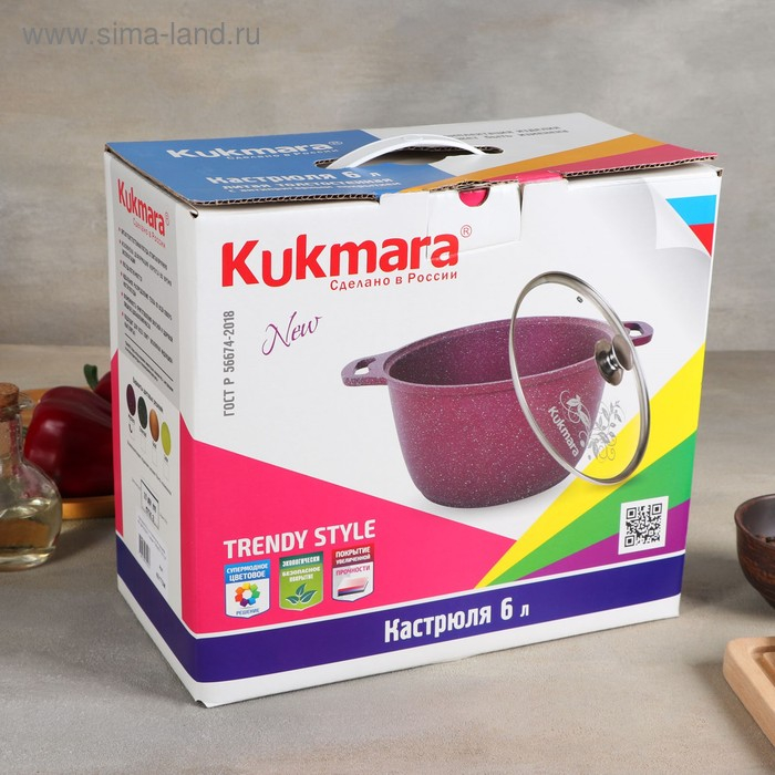 Посуда линии Trendy style разработана в соответствии с последними модными тенденциям. Кастрюля Kukmara сделана из литого алюминия, с внутренней и внешней стороны — антипригарное покрытие увеличенной прочности, изготовлено на водной основе по немецким технологиям.