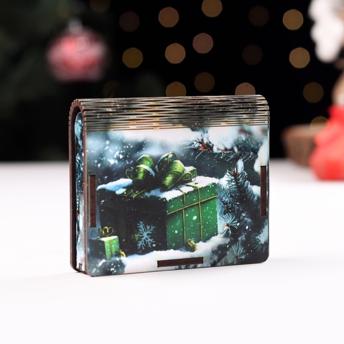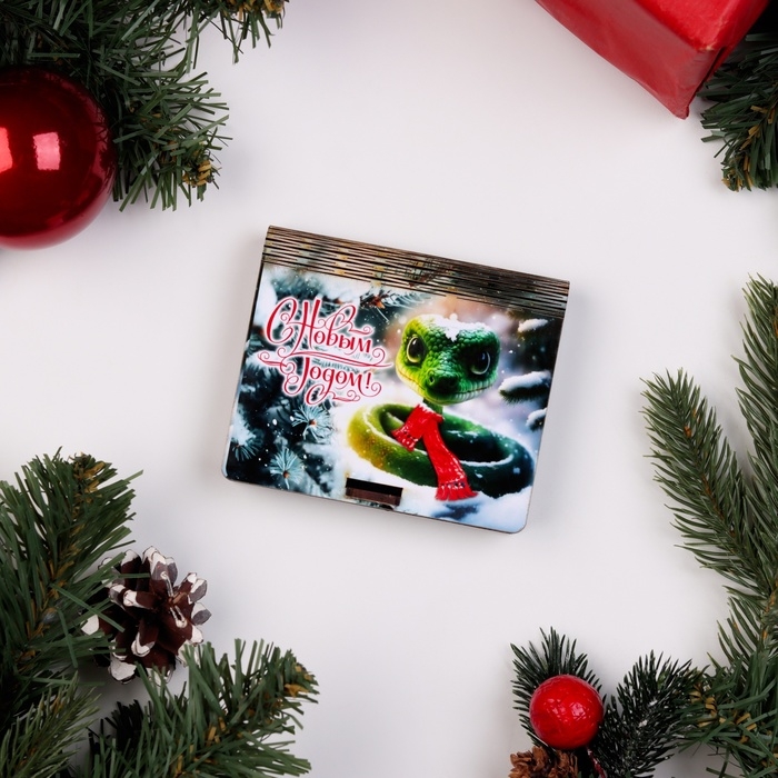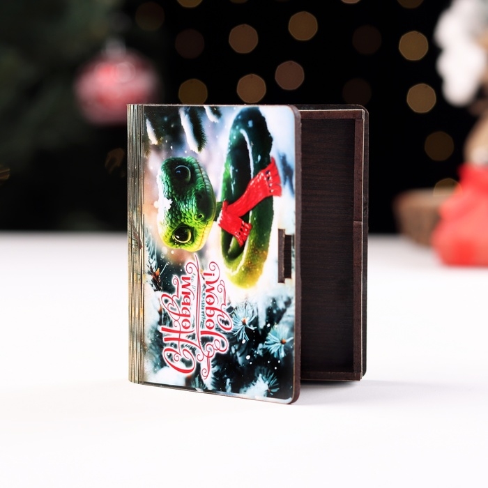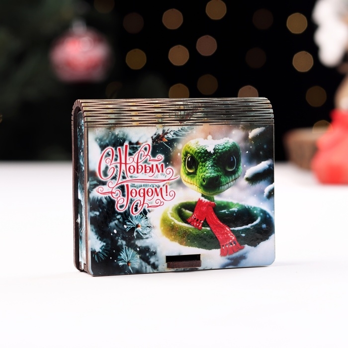 Новый год. Деревянный конверт для денег с символом года № 5 "Змея в шар символ годафе", 9,8х8,5х2 см