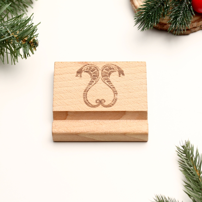 Новый год. Подставка с символом года под телефон, планшет "Змей", 8*8*1,6 см, ясень