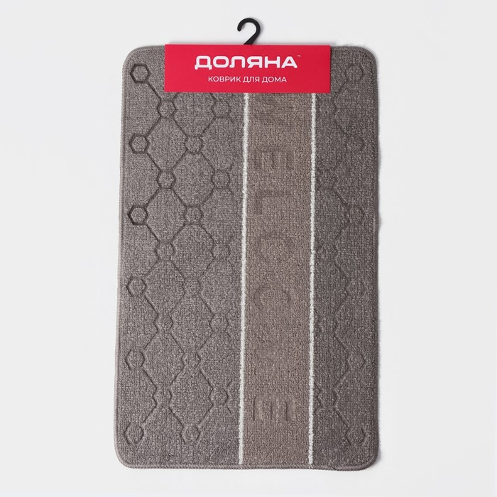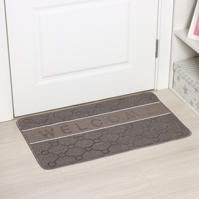 Коврик влаговпитывающий придверный Доляна «Welcome. Молекула», 48×78 см, цвет серый