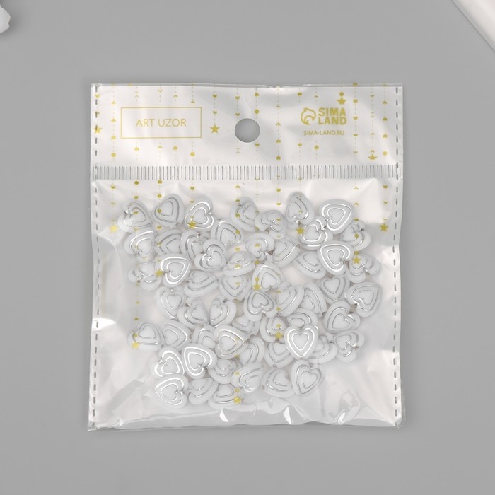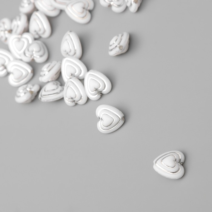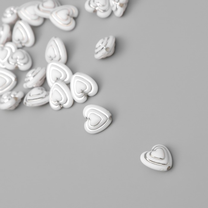 Бусины для творчества пластик "Сердце в сердце" бело-серебристые набор 20 гр 1,1х1,1х0,7 см 10428