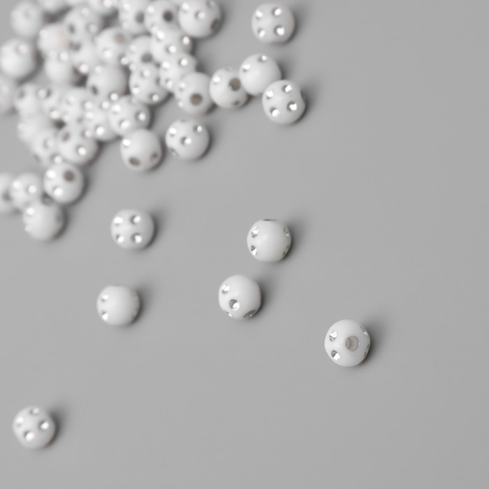 Бусины для творчества пластик "Шар со стразами" бело-серебристые набор 20 гр 0,6х0,6х0,6 см 104285