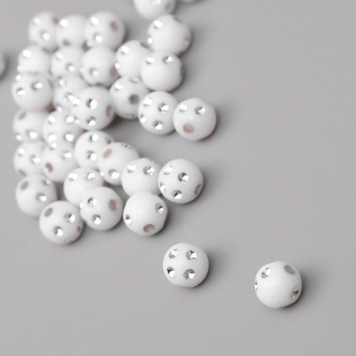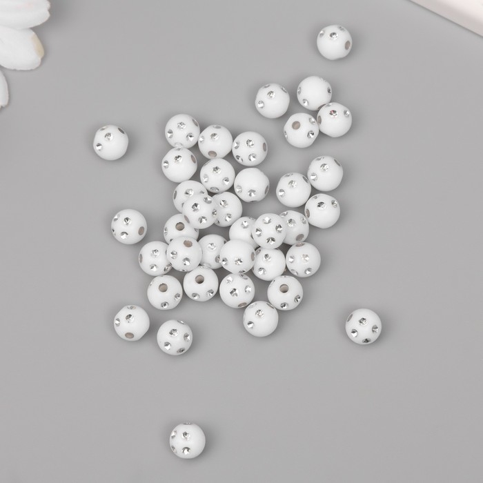 Бусины для творчества пластик "Шар со стразами" бело-серебристые набор 20 гр 0,8х0,8х0,8 см 10428