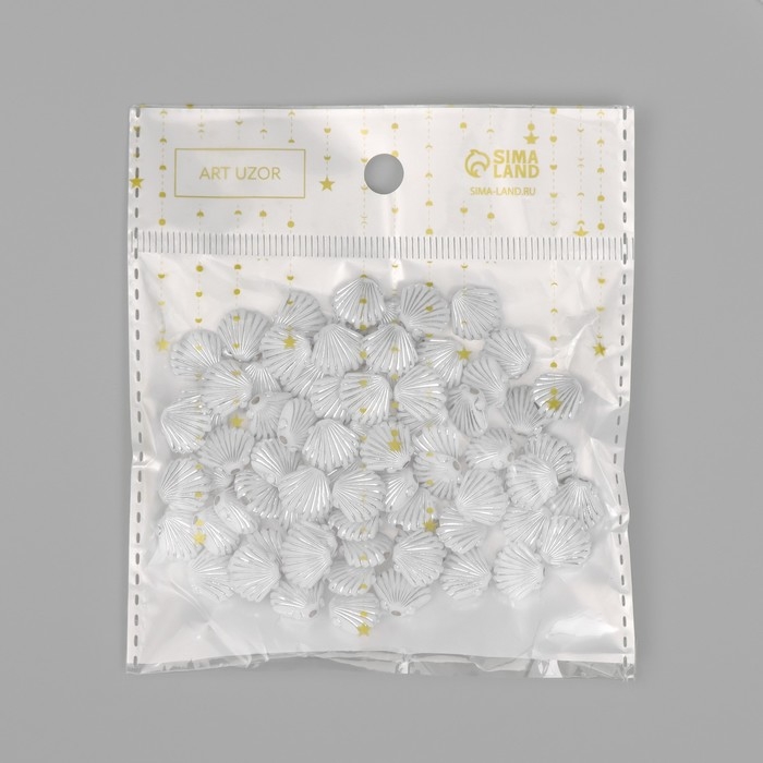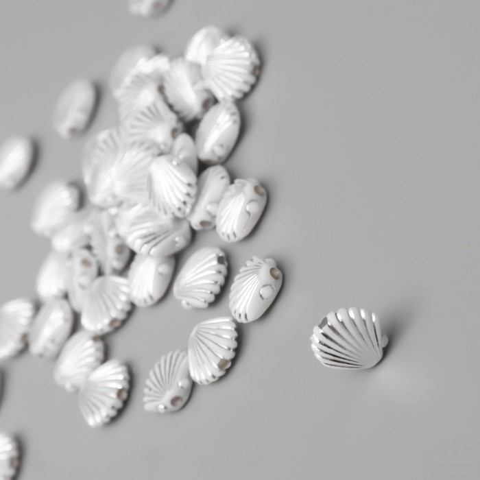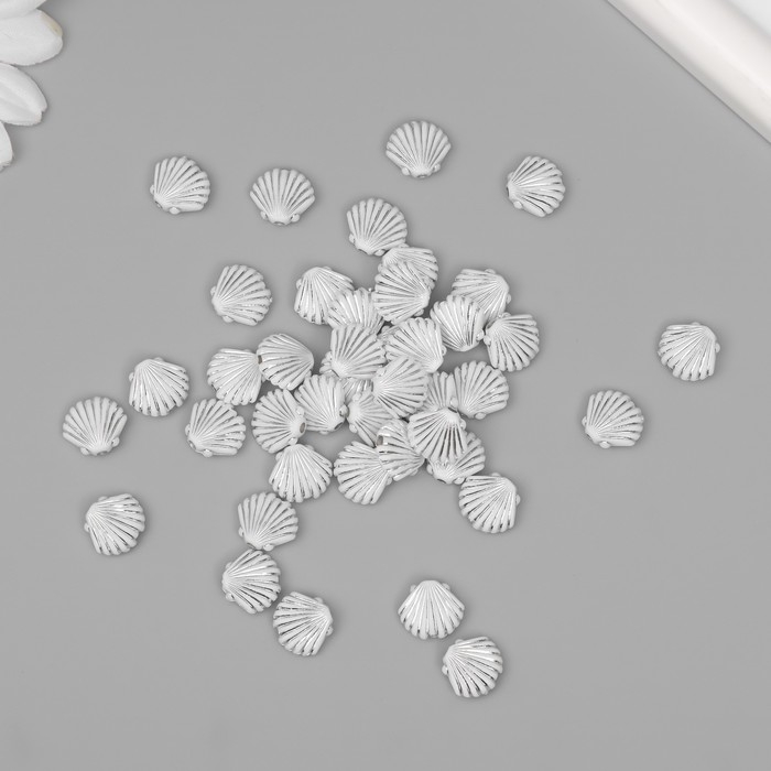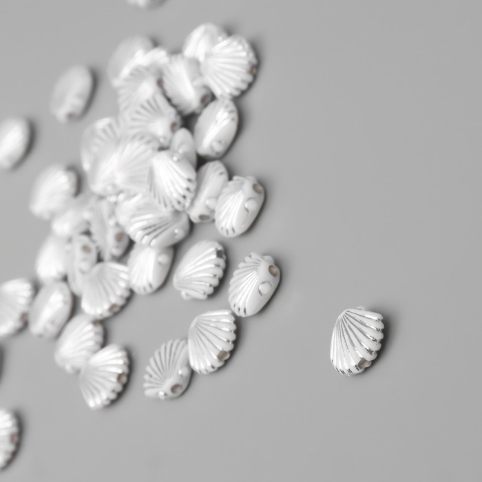 Бусины для творчества пластик "Ракушка" бело-серебристые набор 20 гр 1х1х0,4 см