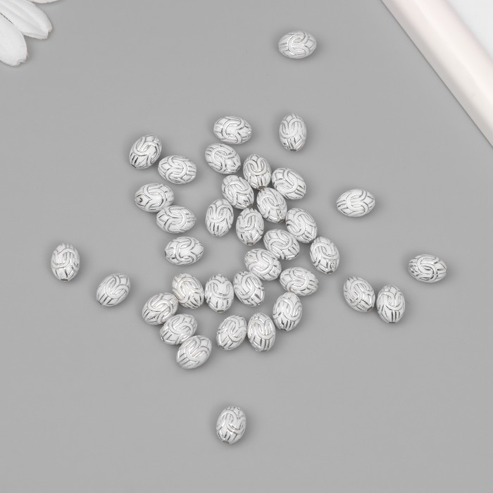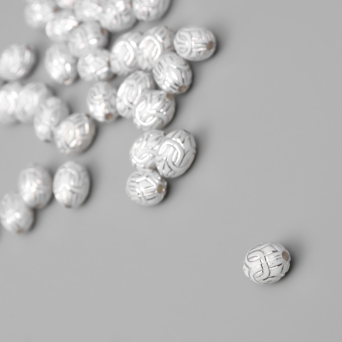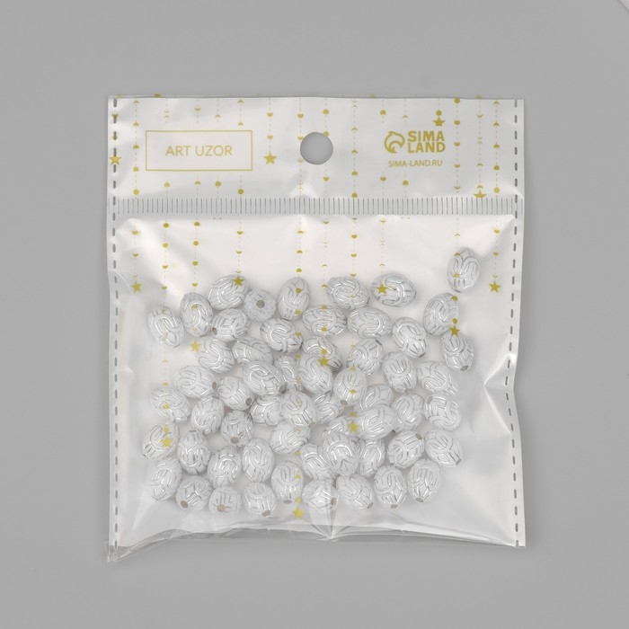 Бусины для творчества пластик "Восточный узор" бело-серебристые набор 20 гр 1х0,8х0,8 см
