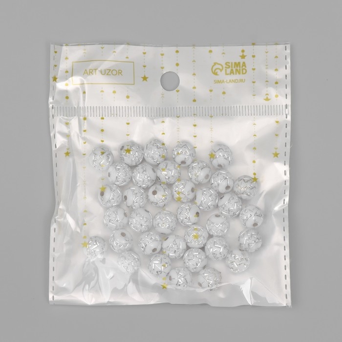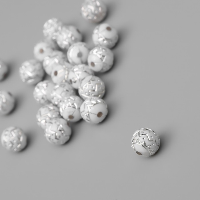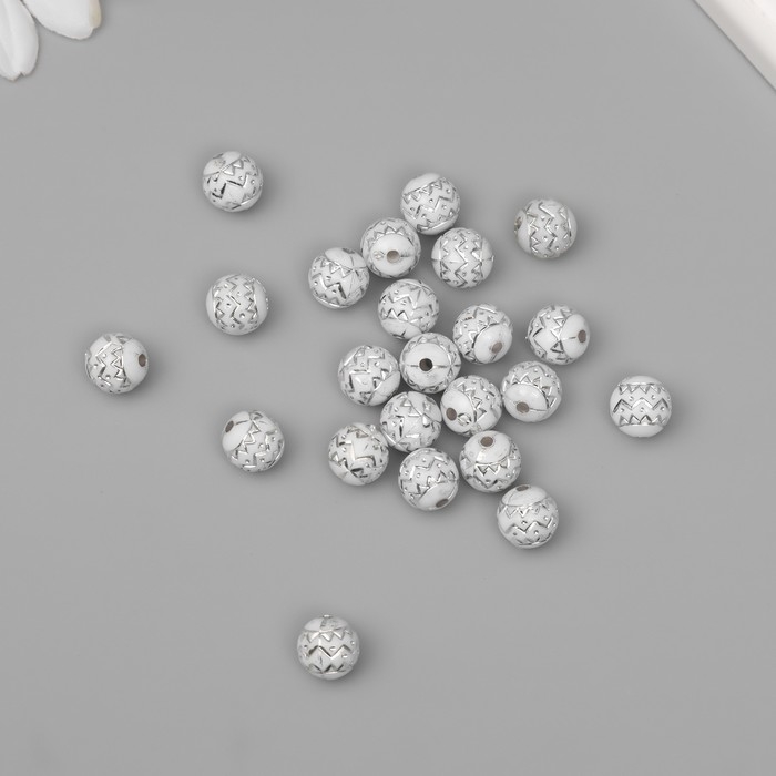 Бусины для творчества пластик "Шар зиг-заг" бело-серебристые набор 20 гр 1х1х1 см