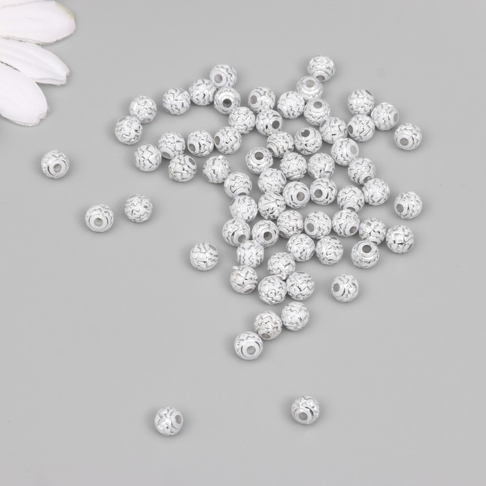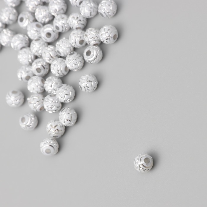 Бусины для творчества пластик "Шар зиг-заг" бело-серебристые набор 20 гр 0,6х0,6х0,6 см
