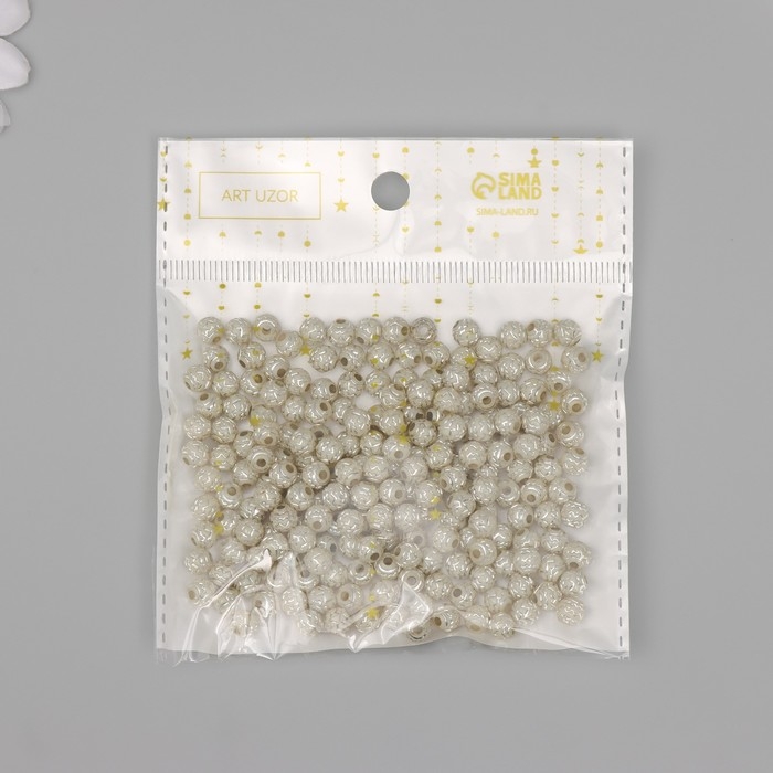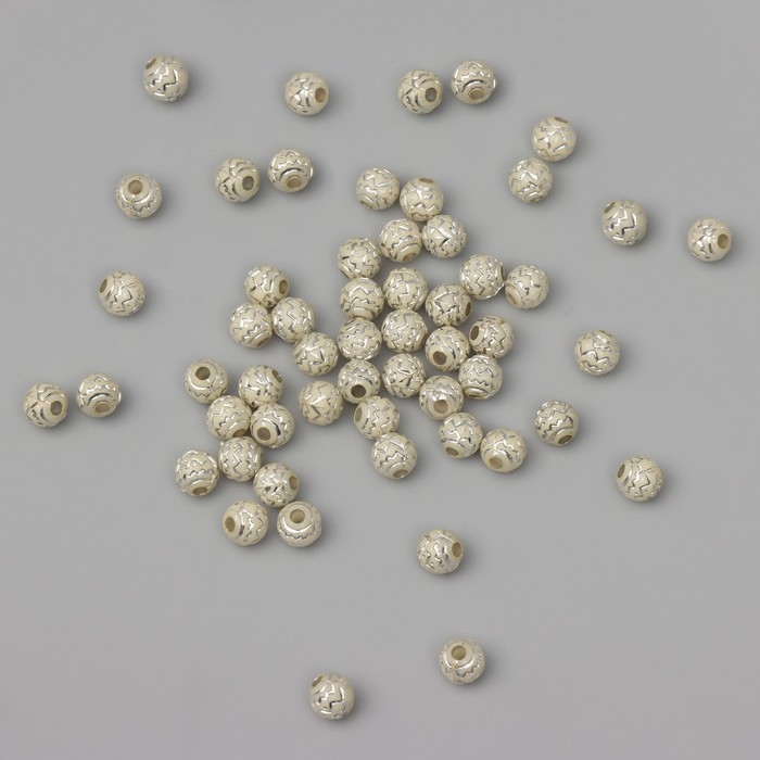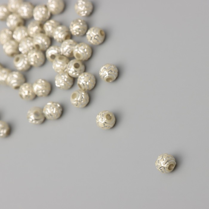 Бусины для творчества пластик "Шар зиг-заг" бежево-серебристые набор 20 гр 0,6х0,6х0,6 см