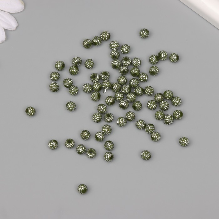 Бусины для творчества пластик "Шар зиг-заг" оливково-серебристые набор 20 гр0,6х0,6х0,6 см 1042857