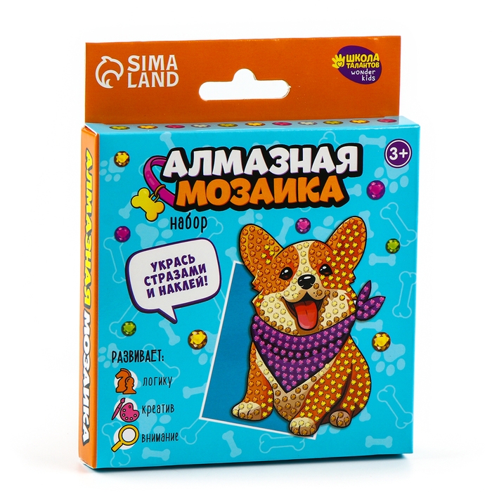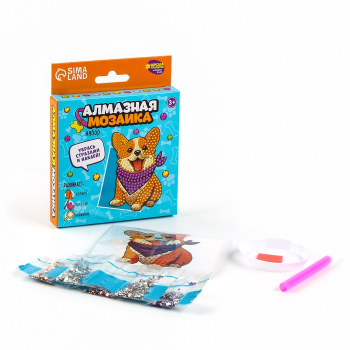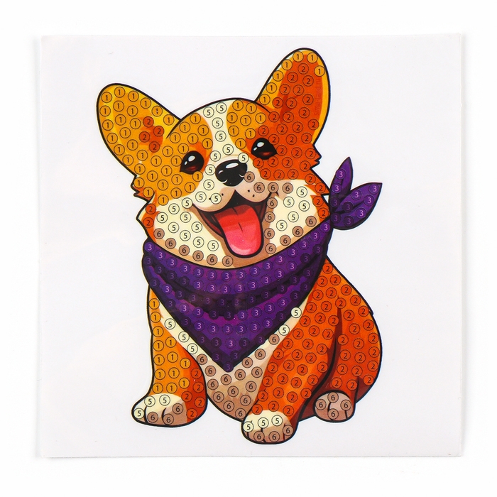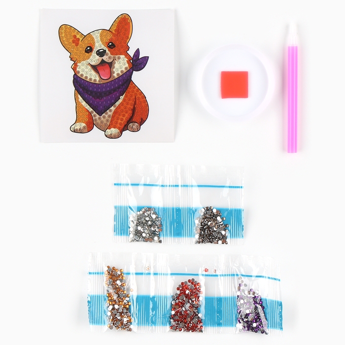 Алмазная мозаика наклейка для детей «Малыш корги», 9 х 6 см, набор для творчества