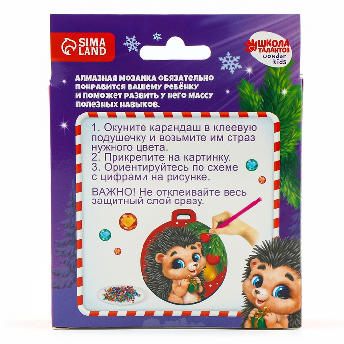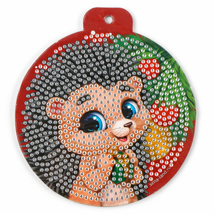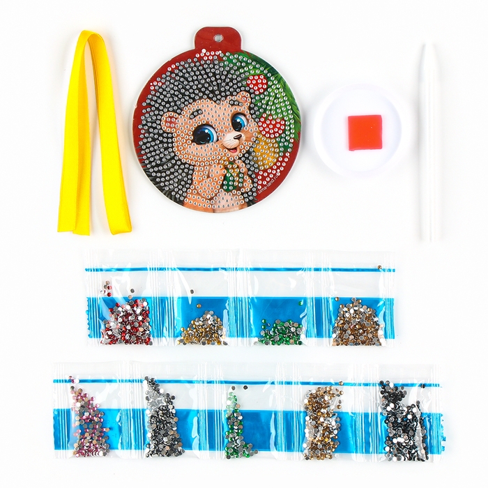 Алмазная мозаика на новый год для детей на подвеске «Ёжик», 10 х 10 см, новогодний набор для творчества