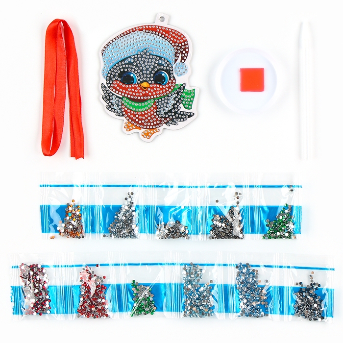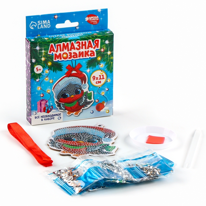 Алмазная мозаика на новый год на подвеске «Снегирь», 9 х 11 см, новогодний набор для творчества