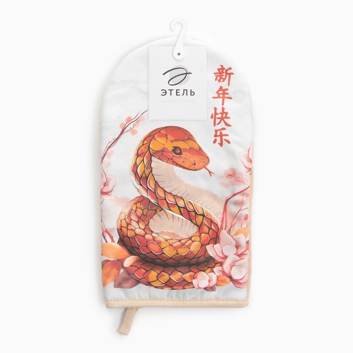 Новый год. Символ года 2025. Змея. Варежка-прихватка Этель Вloom 15х28см,саржа, 100% хл, ватин 250г/м2