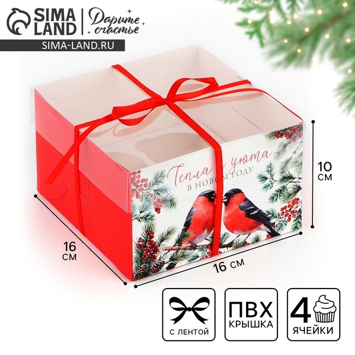 Коробка для капкейка «Тепла и уюта», 16 х 16 х 10 см, Новый год