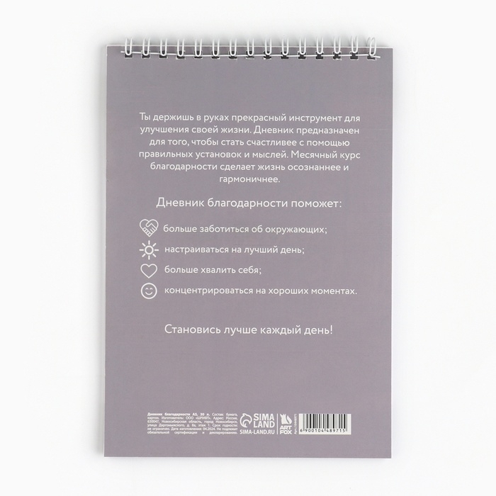 Дневник благодарности А5, 30 л «Серый»