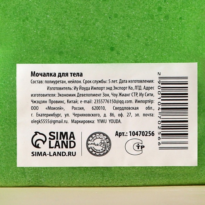 Мочалка для тела Доляна «Колосок», 40 гр, цвет зелёный