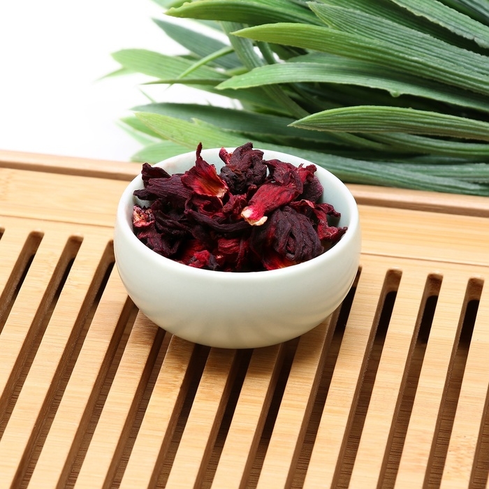 Каркаде (Гибискус) – ярко-красный напиток из лепестков гибискуса (суданской розы), национальный египетский освежающий напиток. Каркаде можно пить горячим или холодным, высушенные лепестки суданской розы доступны и дешевы, имеют малый вес и неприхотливы в хранении. Напиток из гибискуса слегка тонизирует, хорошо освежает в жару и нормализует давление в зависимости от температуры чая. Каркаде укрепляет стенки сосудов, для сосудов, способствует понижению кровяного давления, от давления, полезен для печени. Каркаде также обладает жаропонижающим и мочегонным свойством. Благодаря богатому витаминно-минеральному составу напиток оказывает положительное воздействие на организм. Выводит соли, детокс напиток, способствует мягкому очищению. Особенности продукта: Высокое качество. Чай изготовлен из отборных листьев, которые бережно собираются вручную и проходят строгий контроль качества. Это гарантирует сохранение всех полезных свойств и вкусовых качеств напитка. Натуральный состав. В составе чая только натуральные ингредиенты. Никаких искусственных добавок или ароматизаторов. Утонченный вкус. Зеленый чай обладает нежным вкусом и ароматом, что придает ему особую изысканность и утонченность. Напиток оставляет приятное послевкусие и дарит ощущение гармонии и умиротворения. Польза для здоровья. Зеленый чай известен своими полезными свойствами. Он содержит антиоксиданты, витамины и минералы, которые помогают укрепить иммунитет, улучшить обмен веществ и повысить работоспособность.