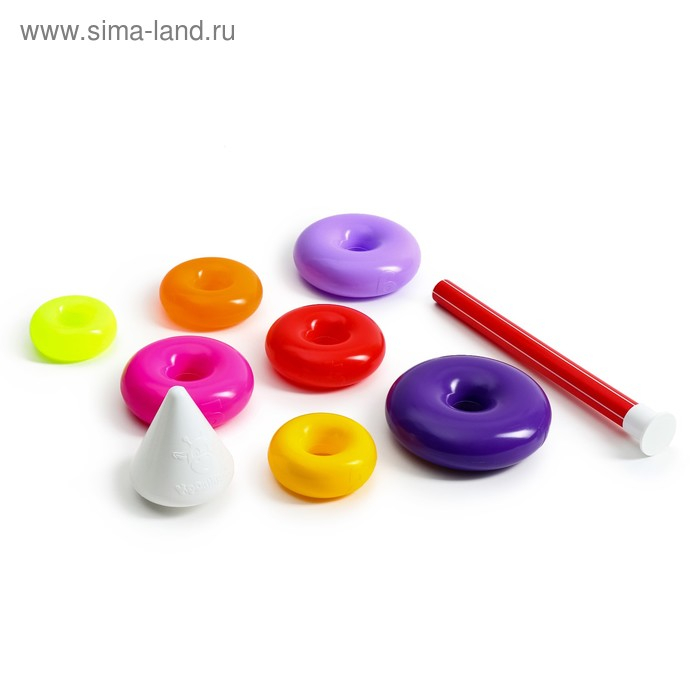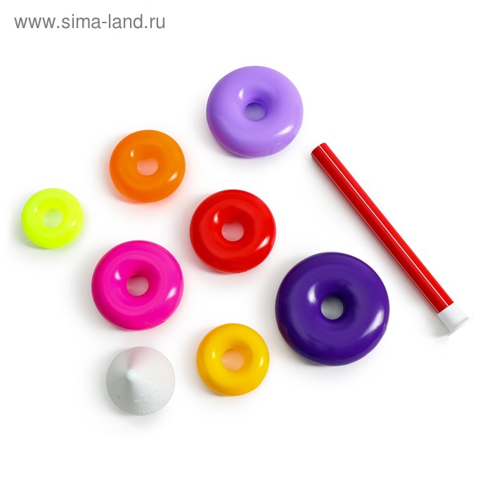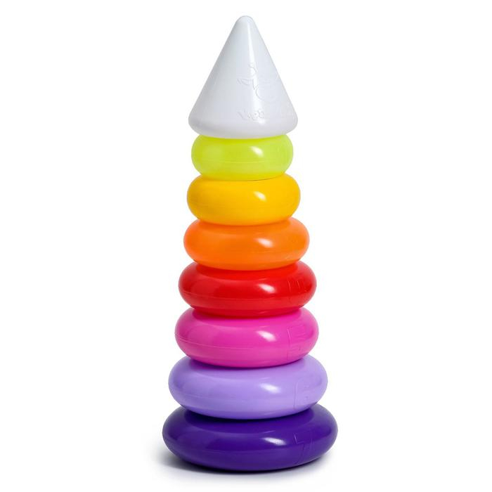 Каждое кольцо разного цвета и пронумеровано. Собирая пирамидку, ребёнок освоит основные цвета радуги и получит базовые навыки счёта. Игры с красочной пирамидкой разовьют у крохи мелкую моторику, координацию движений, воображение, логическое и образное мышление, навыки конструирования. Он научится различать предметы по величине, сравнивать их и делать выводы. Также юный конструктор познакомится с такими понятиями, как «больше», «меньше», «круг», «конус», «плоский», «объёмный».